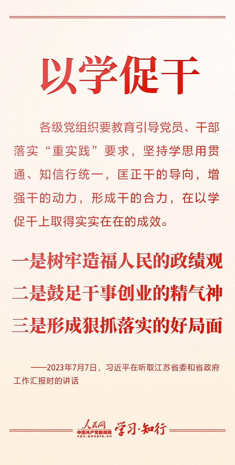 今年以來,習(xí)近平總書記先后在廣東、陜西、內(nèi)蒙古、江蘇等地考察調(diào)研,分別對主題教育根本任務(wù)中“以學(xué)鑄魂、以學(xué)增智、以學(xué)正風(fēng)、以學(xué)促干”四個方面作出深刻闡釋,四堂生動的黨課不斷推動主題教育深入開展、取得實(shí)實(shí)在在的成效。