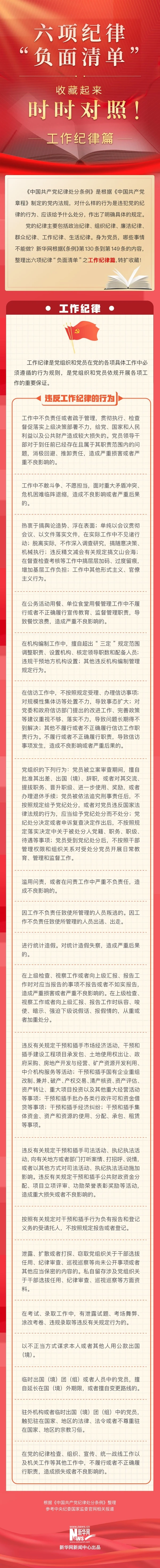 當(dāng)前,全黨正在開展黨紀(jì)學(xué)習(xí)教育。這次黨紀(jì)學(xué)習(xí)教育明確要聚焦解決一些黨員、干部對黨規(guī)黨紀(jì)不上心、不了解、不掌握等問題,組織黨員特別是黨員領(lǐng)導(dǎo)干部認(rèn)真學(xué)習(xí)《中國共產(chǎn)黨紀(jì)律處分條例》,做到學(xué)紀(jì)、知紀(jì)、明紀(jì)、守紀(jì),搞清楚黨的紀(jì)律規(guī)矩是什么,弄明白能干什么、不能干什么,把遵規(guī)守紀(jì)刻印在心,內(nèi)化為言行準(zhǔn)則,進一步強化紀(jì)律意識、加強自我約束、提高免疫能力,增強政治定力、紀(jì)律定力、道德定力、抵腐定力,始終做到忠誠干凈擔(dān)當(dāng)。今天推出“負(fù)面清單”之工作紀(jì)律篇,一起收藏學(xué)習(xí)。