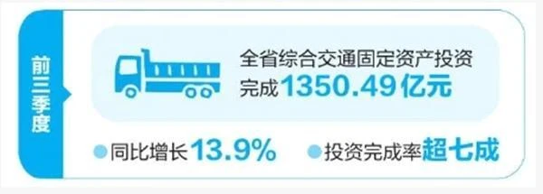 今年1月召開(kāi)的全省交通運(yùn)輸工作會(huì)議強(qiáng)調(diào),加快完善服務(wù)國(guó)家戰(zhàn)略的綜合立體交通網(wǎng)絡(luò)。重大項(xiàng)目建設(shè)高歌猛進(jìn)的背后,是全省綜合交通投資的強(qiáng)勁支撐。前三季度,全省綜合交通固定資產(chǎn)投資完成1350.49億元,同比增長(zhǎng)13.9%,完成年初制定目標(biāo)1800億元的75.0%。